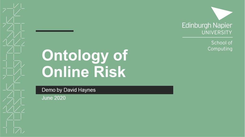 Here are some slides from a demonstration of the privacy risk model that I gave online at Edinburgh Napier University on 3rd June 2020. The slides capture snapshots from the live demo using Synaptica’s Graphite software. The presentation also identifies possible avenues for development of the ontology.